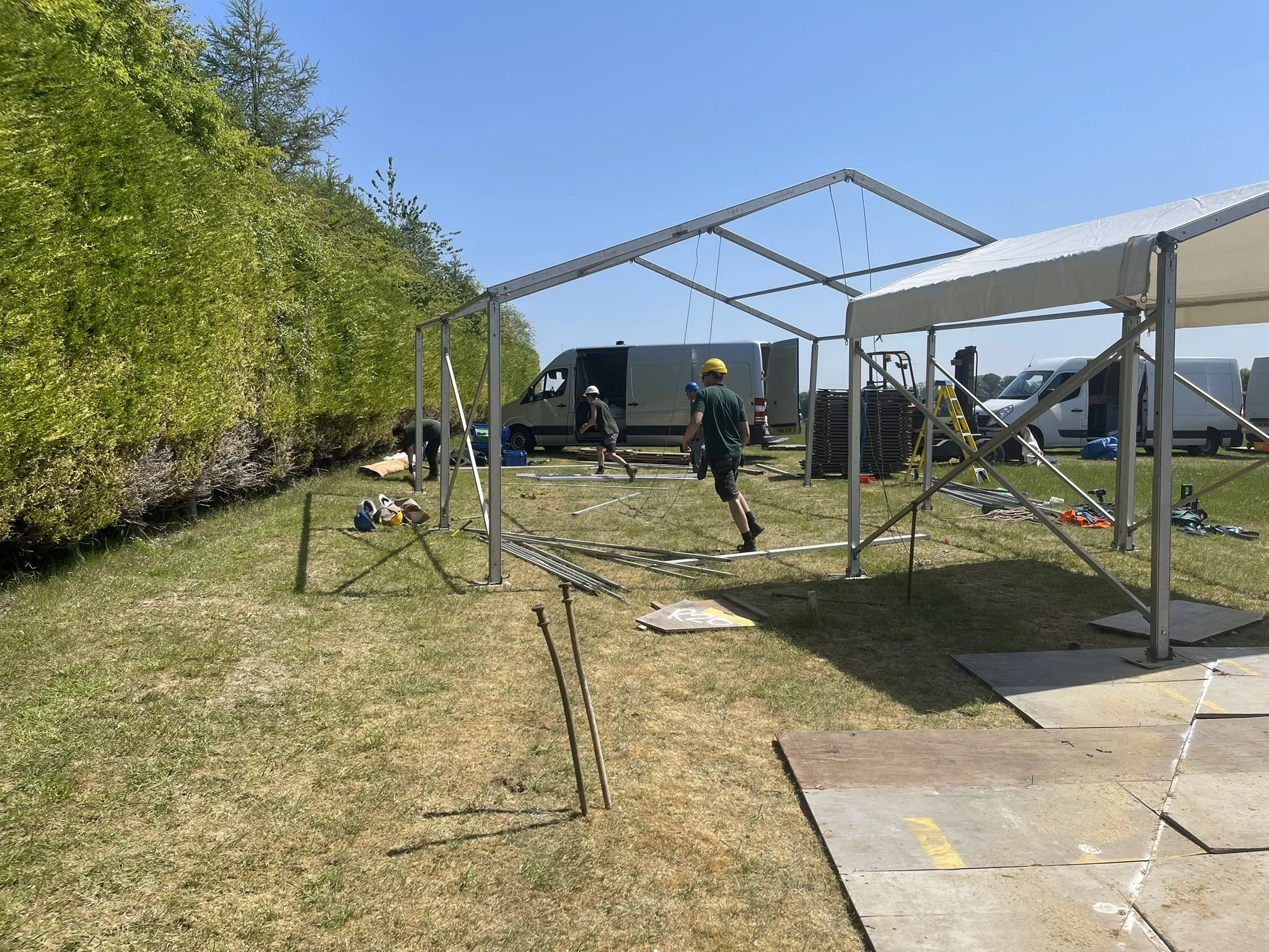 Every build is carefully scheduled to minimise disruption to the venue and surrounding environment. We liaise closely with clients, venues and suppliers to ensure smooth access, clear communication and a seamless installation. From the structural framework to flooring, linings and power distribution, every element is installed to the highest standard.